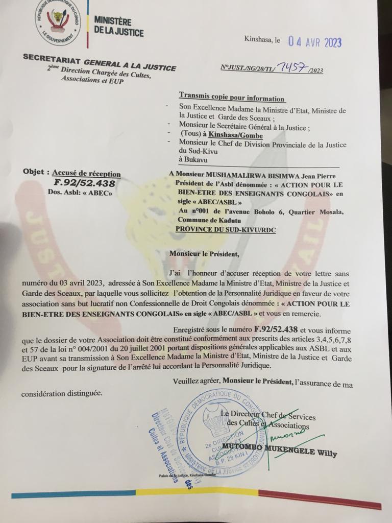 Le 5 mars 2022, est née à Bukavu (Province du Sud-Kivu, RDC), l'organisation Action pour le Bien-être des Enseignants Congolais – branche Humanitaire (ABEC-Humanitaire). Elle se veut une voix forte, un acteur de terrain et une force de proposition pour défendre les droits fondamentaux des enseignants.